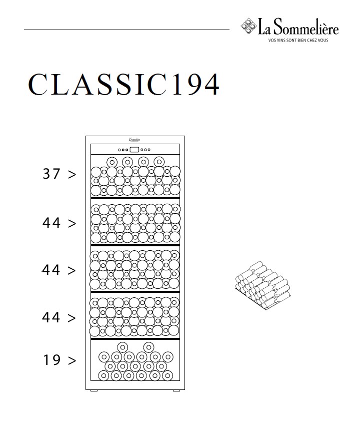 Позволяет хранить вина на 4-х полках их натурального дерева с фронтом из бука.